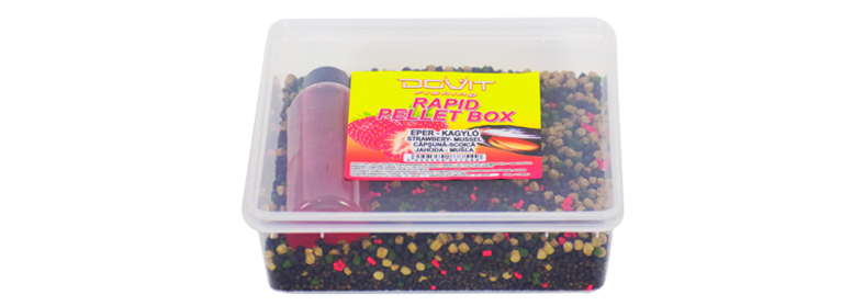 Cenjeni mađarski proizvođač primama, mamaca i raznih aditiva – Dovit Fishing, čiji je ekskluzivni uvoznik i distributer za Srbiju odskora firma Mozaik centar iz Žablja, u bogatoj ponudi artikala za metod-fider ribolov ima i Rapid Pellet Box komplet, sastavljen od 450 grama peleta (i to mešavine najmanje sedam vrsta, s različitim udelom proteina, tako da se u vodi otapaju nejednakom brzinom) i 150 ml tečne arome. Priprema je krajnje jednostavna – preko peleta se sipa cela količina arome, sve se temeljno promeša rukom, a potom kutija zatvori i dobro protrese, te ostavi da se sadržaj natapa 20 do 40 minuta. Nakon toga je masa spremna za upotrebu, tj. za lepljenje na hranilicu metod tipa ili za ubacivanje u kaveznu, između »čepova« od brašnaste hrane. Ova primama upotrebljiva je preko cele godine, kako u najhladnijoj vodi tako i u vrlo toploj, a kako je na visoskim temperaturama vreme potrebno za ravnomerno natapanja peleta kraće, u letnjim uslovima ne moramo spremati pelete unapred, već po dolasku na vodu, jer će biti idealni za korišćenje malo nakon što posle kvašenja i mešenja prihrane raspakujemo pribor i smestimo se na stolicu.