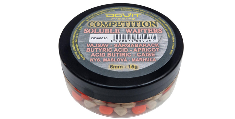 Firma Mozaik centar iz Žablja u raznovrsnoj ponudi artikala za moderni šaranski, fider i meč ribolov iz asortimana mađarskog proizvođača Dovit Fishing od pre desetak dana ima i provereno lovne male vaftere iz Competition palete u nekoliko aroma, od kojih ovog puta izdvajamo kombinovani miris puterne kiseline i kajsije, dokazano privlačan preko cele godine. Ovi vafteri su tako balansirani da lebde tik iznad dna, ne odižući udicu sa njega, a za pecanje krupnijih ciprinida se mogu koristiti i na stajaćicama, uz upotrebu kratkih predveza i metod hranilica, ali i na tekućim vodama (rekama i kanalima), u kombinaciji sa dužim predvezima i hranilicama drugih vrsta (kaveznim, otvorenim itd.). Površinski sloj ovih vaftera, kao i svih drugih iz Competition programa, počne da se otapa odmah po padu u vodu, tako da oni brzo počnu da oslobađaju mirise i da šire »film« upadljive boje, kom i oprezne ribe na vodama izloženim velikom ribolovačkom pritisku teško mogu odoleti, ali taj proces traje dugo, tako da mamac privlačno deluje i po nekoliko sati (zavisno od temperature vode). Dobra strana ovog proizvoda je i to što su u svakom pakovanju vafteri istog mirisa u dve boje, tako da ribolovac može tokom pecanja lako i brzo ponuditi ribi nešto novo i neočekivano.