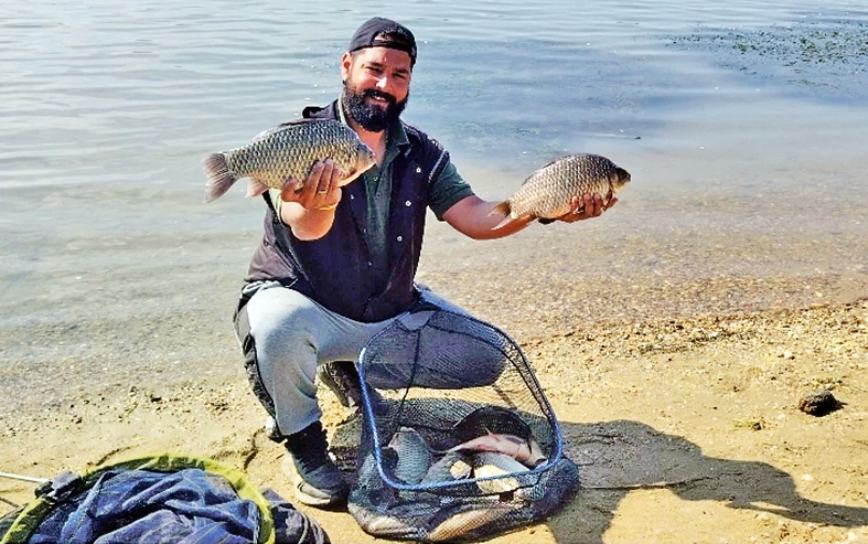 ZAMEŠAO SAM HRANU MOJE PROIZVODNJE (Borza Fishing Vanila), a onda joj radi povećanja lepljivosti dodao moju kuvanu prekrupu koju sam aromatizovao SLĐ prelivačima sa aromama kupine i jagode. Nakon toga sam namontirao sisteme na oba štapa. Na prvi sam postavio kaveznu hranilicu od 50 g i udicu veličine 14 sa kratkim vratom, na koju sam pre zabačaja na vrh spruda okačio koktel-mamac sastavljen od crvene gliste i belog mesnog crvića. Na drugi štap sam okačio hranilicu sa otežanjem od 50 g, ali metod tipa; ispod nje, na tek 10 cm dugom predvezu od upredene strune, bila je udica veličine 10 sa »trnom«, na koji sam natakao pop-ap Gica Mix Fluo Smoke, prečnika 8 mm, sa aromom kukuruza.