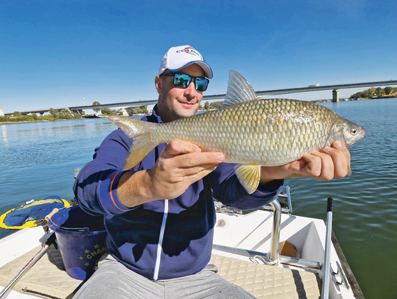 Na terenima poput ovog može se uspešno pecati fider tehnikom, ali ne i plovkom, zato što vodena struja nikad ne gura plovak na isti način, pa ga je teško »voziti« preko hrane. Zbog toga sam čamac usidrio na ivici »kuvanja« i toka, s tim što mi je plan bio da zabacujem u tok. Na ovakvim mestima poželjno je imati dva sidra. Prednje od njih (tj. ono kod pramca) ima standardnu funkciju, tj. ne dozvoljava da čamac ide nizvodno, dok ono koje je bliže motoru u ovom slučaju sprečava da se čamac guran bočnim strujama, koje nastaju zbog udaranja vode u stubove mosta, pomera levo-desno.